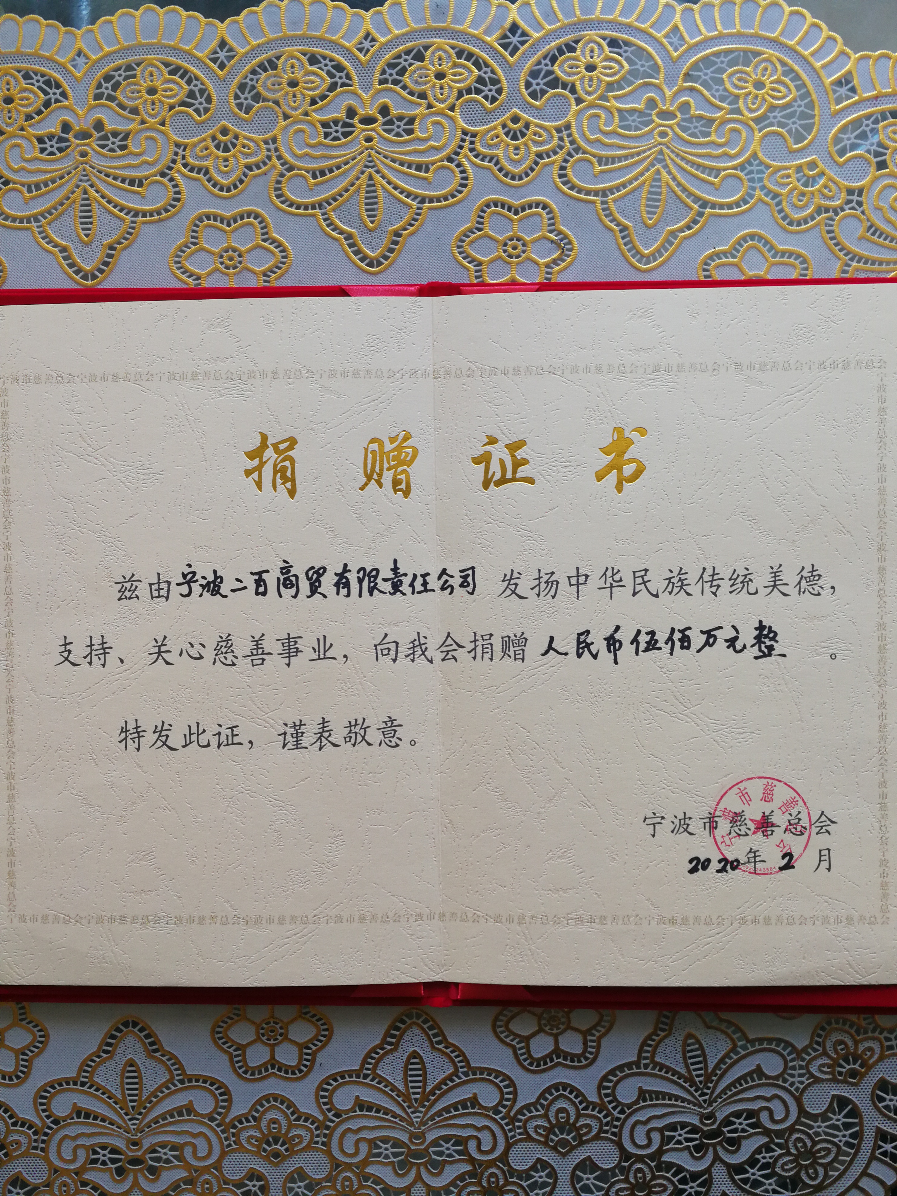 繼“寧波中百”于2月2號(hào)向海曙區(qū)紅十字會(huì)捐贈(zèng)了500萬(wàn)元用于疫情防控的善款后,“寧波中百”的全資子公司“寧波二百”,也于2月10號(hào)向?qū)幉ㄊ写壬瓶倳?huì)捐贈(zèng)了同樣用于抗擊疫情的善款500萬(wàn)元。該部分善款將用于抗疫醫(yī)療設(shè)備、物資的采購(gòu)和一線(xiàn)抗疫工作物資的保障等方面。
